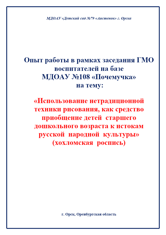 МДОАУ Детский сад No 79 « Аистенок» г. Орск