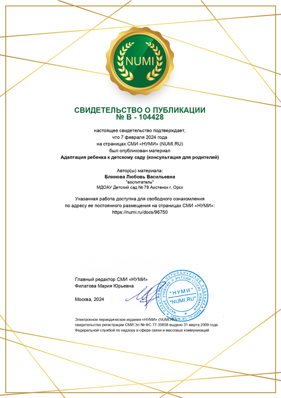 МДОАУ Детский сад No 79 « Аистенок» г. Орск